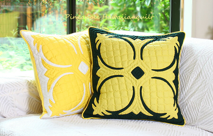 パイナップル ハワイアンキルト クッションカバー インテリアの定番アイテムといえば、クッション! カバーを変えるだけでインテリアの雰囲気も、使っている人の気持ちもリフレッシュさせてくれる 小さいながらも存在感と、ユーティリティーを兼ね備えたインテリアアクセサリーです。