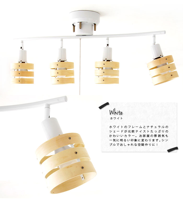【商品名】4灯シーリングスポットライト・3環ウッドシェード [Bronte ブロンテ] 昼白色LED電球4個付き【サイズ】(約)全長80×幅34×フレンジφ16×シェード12×17cm【重量】(約)2.4kg【梱包サイズ】(約)幅82×高さ35×奥行17cm【梱包重量】(約)3kg【素材】フレーム:鉄シェード:木(焼き付け塗装)【口金】E26×4個【製造国】中国【備考】プルスイッチ 4灯-2灯-OFF昼白色LED電球4個付き※サイズには若干の差がございます。