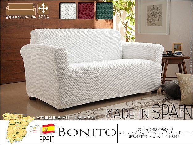 スペイン製 中綿入りストレッチフィットソファカバー ボニート 肘掛け付き・3人掛ワイド mu-61001010送料無料 北欧 モダン 家具 インテリア ナチュラル テイスト 新生活 オススメ おしゃれ 後払い ソファ sofa