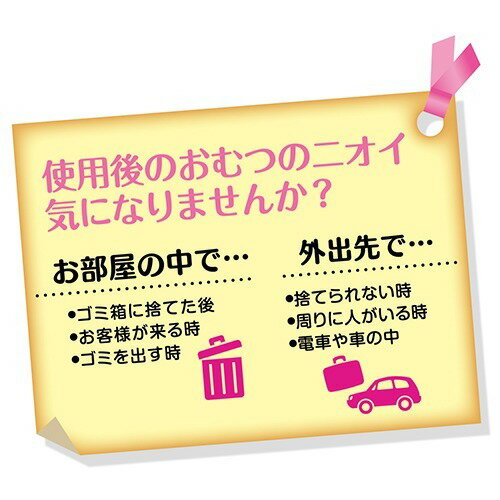 ●ハーモナイズド香料で使用後のおむつのイヤなニオイを香りに変えて消臭 ※ハーモナイズド香料とは、アンモニア臭などを心地よい香りに変える香料です。
