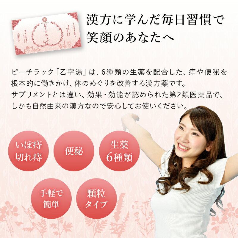 第2類医薬品 ピーチラック 漢方 乙字湯 痔 32包 本草乙字湯 エキス顆粒-H 漢方 生薬 サプリメント ぢ いぼ痔 きれ痔 便秘 脱肛 トウキ サイコ ショウマ オウゴン カンゾウ ダイオウ お尻の悩み お尻 めぐり改善