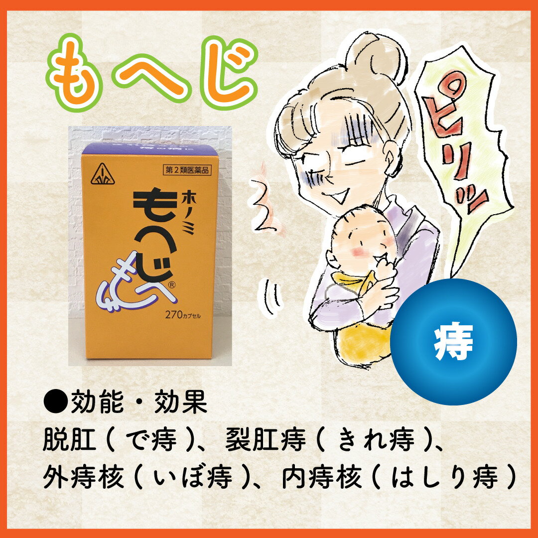 商品情報商品名もへじ包装270カプセル効能効果脱肛(で痔)、裂肛痔(きれ痔)、外痔核(いぼ痔)、内痔核(はしり痔)用量用法次の量を食後に、コップ半分以上のぬるま湯にて服用して下さい。